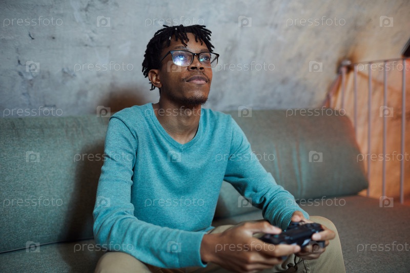Афроамериканский мужчина играет в видеоигры