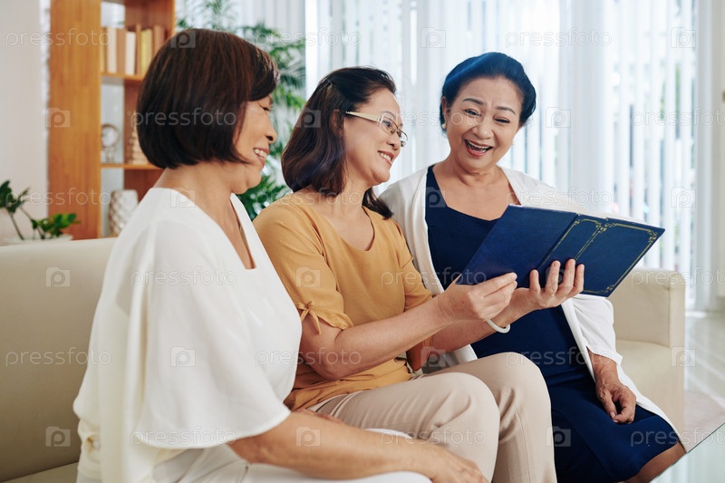 Пожилые женщины обсуждают внуков