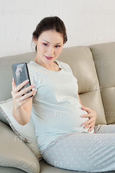 Беременная женщина делает селфи