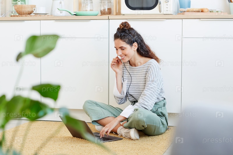 Расслабленная женщина с ноутбуком