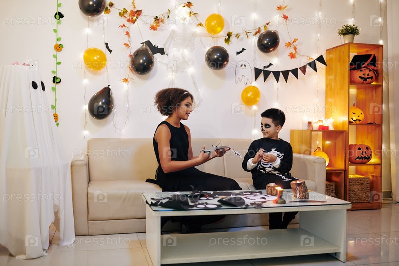 Братья и сестры вырезают наклейки