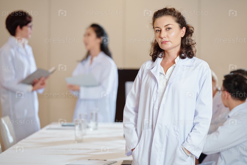 Зрелый фармаколог в зале заседаний