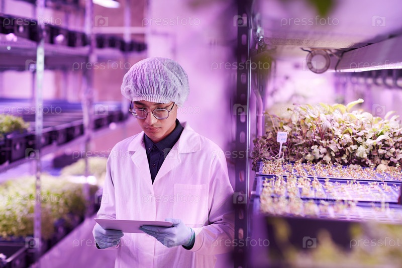Мужчина, работающий в теплице