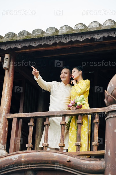 Вьетнамская пара стоит на балконе