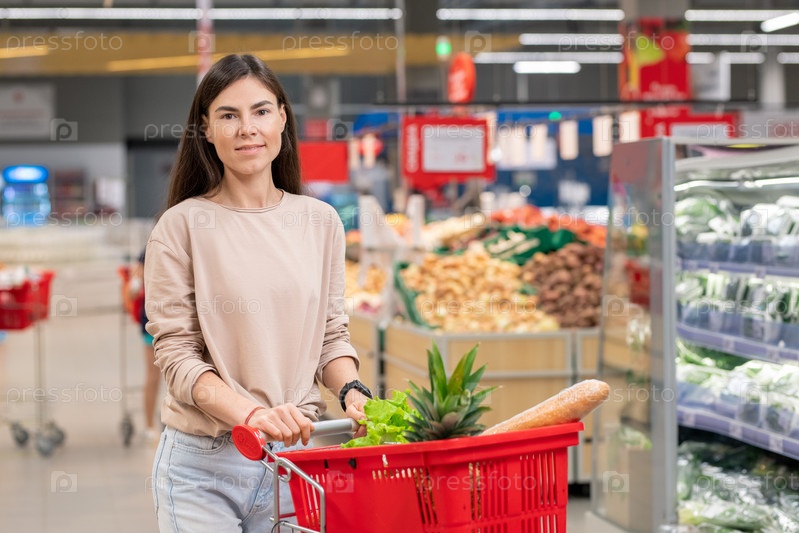 Женщина с корзиной покупок в магазине