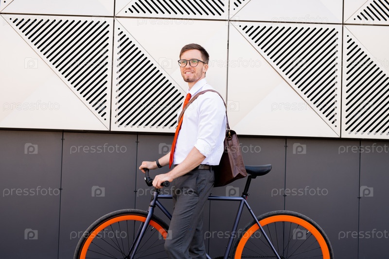 Счастливый элегантный молодой человек, стоящий у стены современной архитектуры
