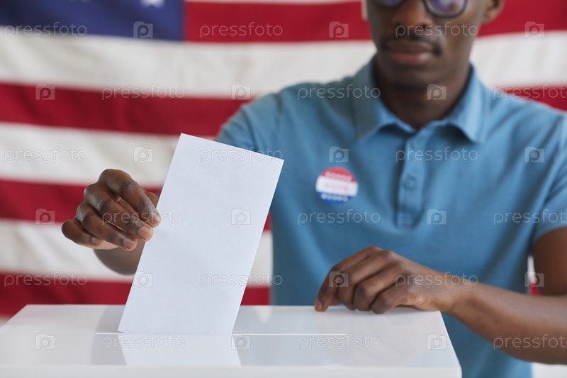 Африканский мужчина ставит свой голос в урну для голосования Close Up
