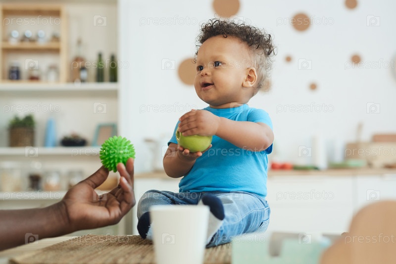 Счастливый африканский ребенок на столе