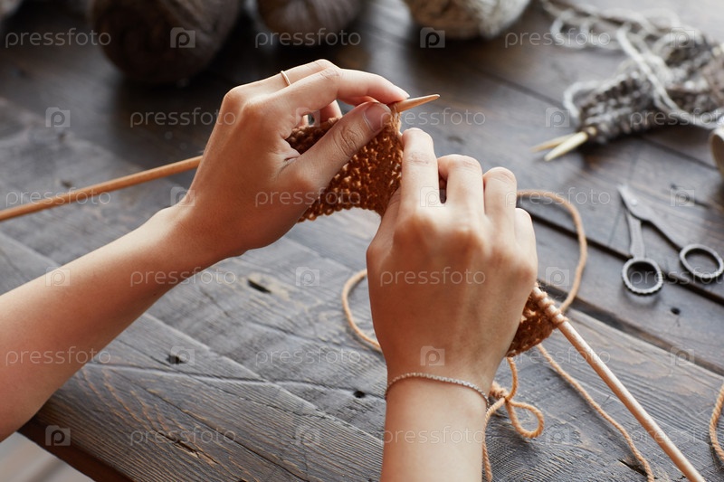Женщина вяжет теплую одежду