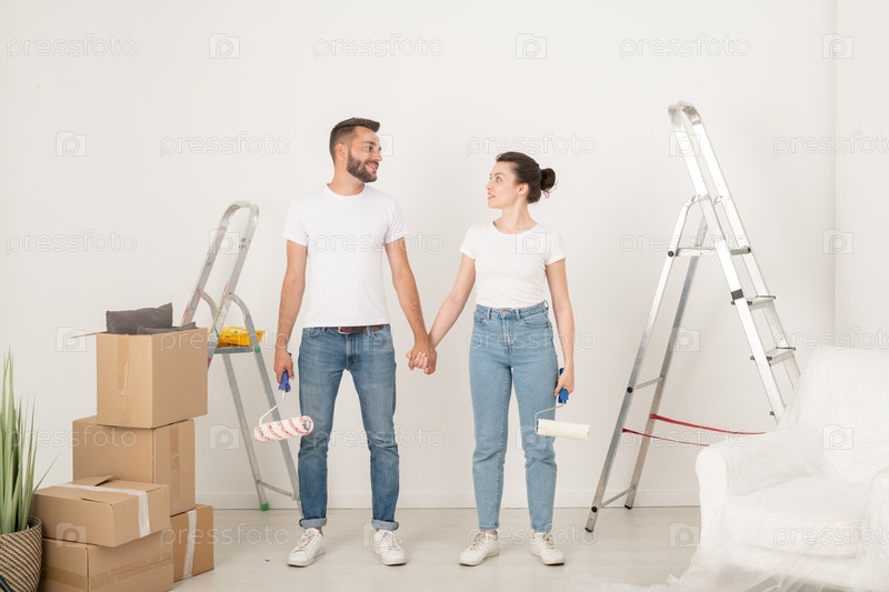 Пара, поддерживающая друг друга во время реконструкции комнаты