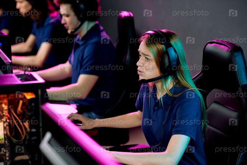 Беспокойная девушка из электронного спорта играет в видеоигры