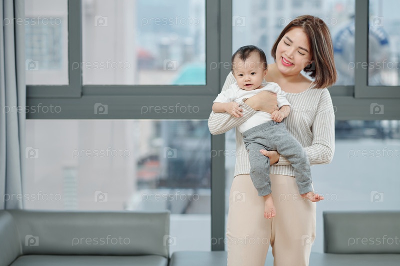Молодая мать, несущая дочь