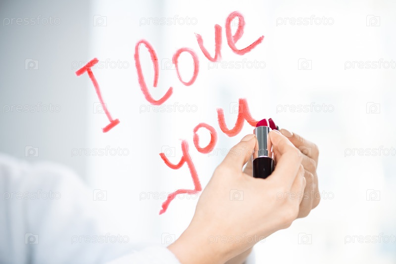 Рука молодой женщины, пишущей любовное сообщение красной или фиолетовой помадой