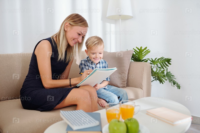 Мать объясняет тему своему сыну-подростку