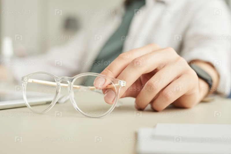 Бизнесмен, держащий очки Close Up