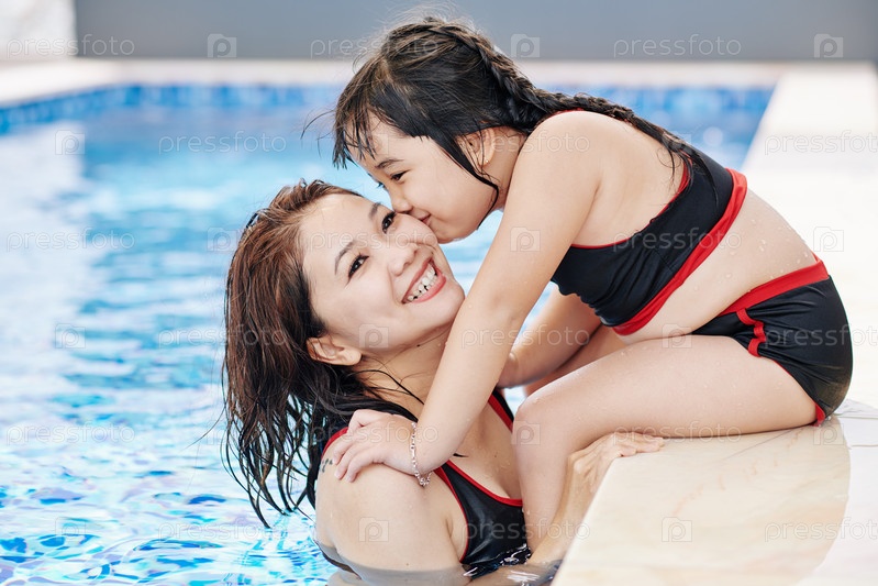 Девочка целуется с матерью