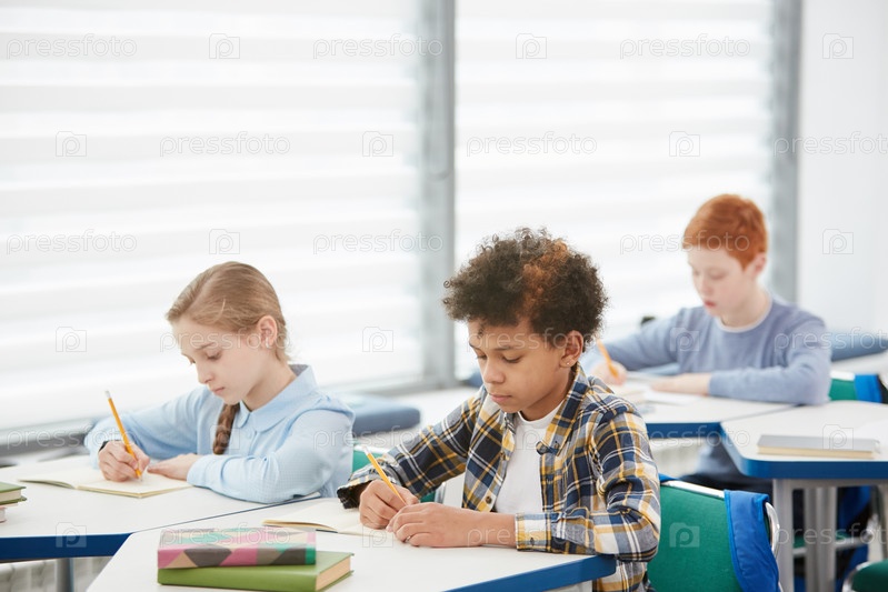 Группа детей, сдающих экзамены в школе