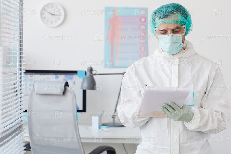 Врач, заполняющий медицинскую карту Мужчина