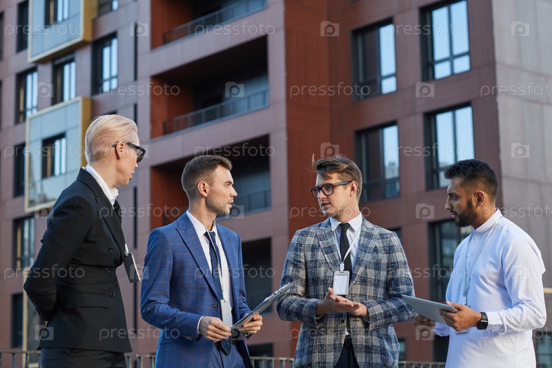 Коллеги по бизнесу обсуждают на свежем воздухе
