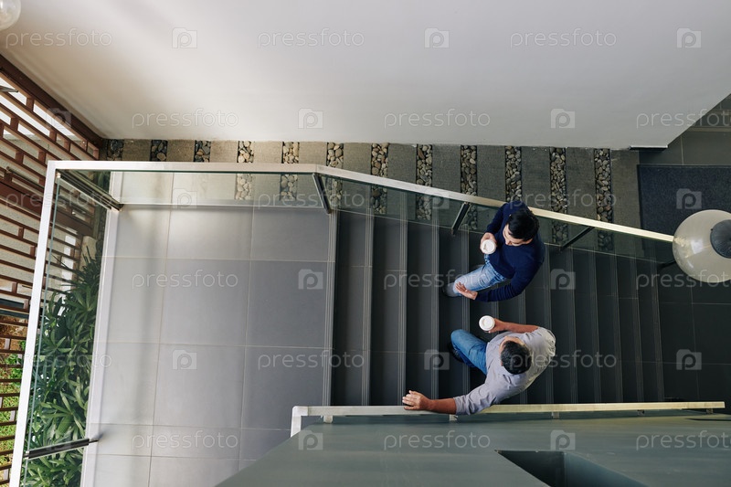 Коллеги, которые разговаривают и поднимаются по лестнице