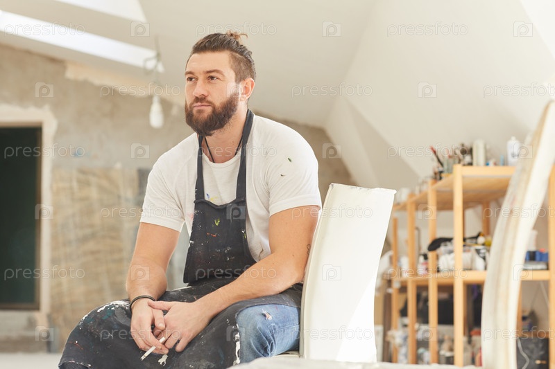 Бородатый мужской художник в студии