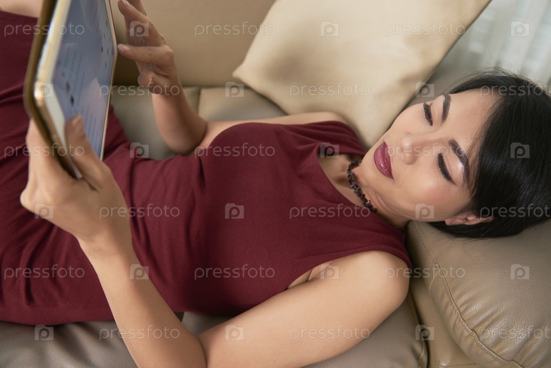 Женщина отдыхает с цифровым планшетом