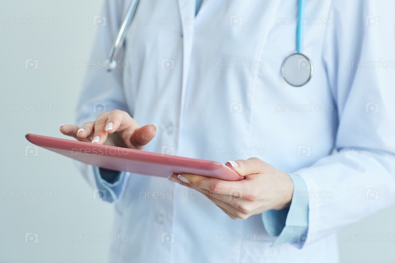 Женщина-врач, использующая цифровой планшет Close Up