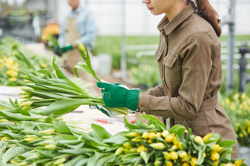 Работница, сортирующая тюльпаны