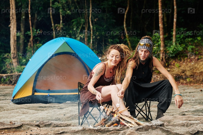 Зрелая пара жарит зефиры