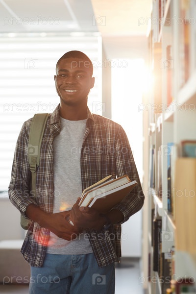 Студент африканского колледжа в библиотеке