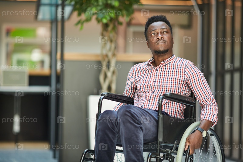 Офисный работник, сидящий в инвалидной коляске