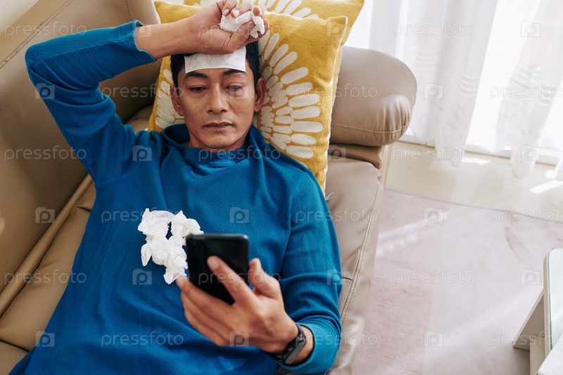 Больной человек отдыхает на диване