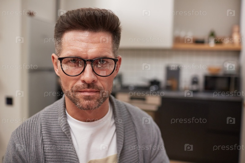 Портрет зрелого мужчины, носящего очки дома