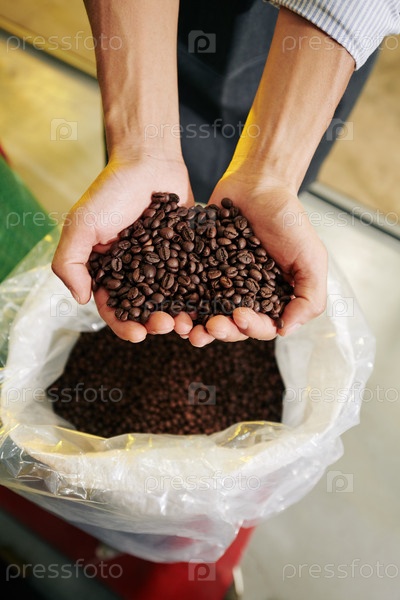 Руки с кофейными зернами