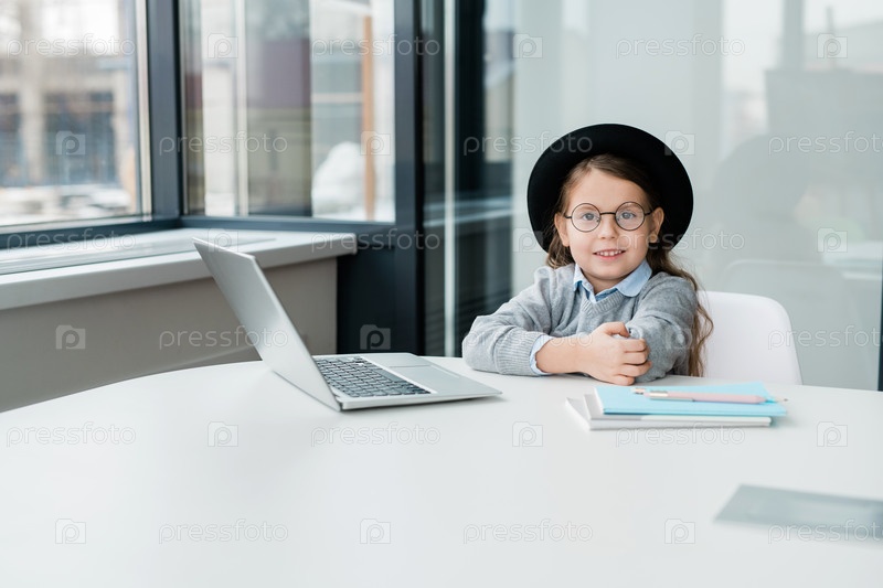 Тщательная девушка в очках и повседневной одежде готовит домашнее задание перед ноутбуком