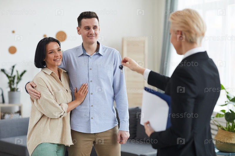 Риэлтор отдает ключи молодой паре