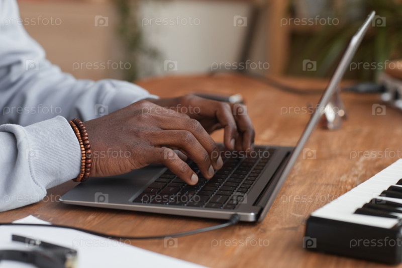 Афроамериканский музыкант использует ноутбук Close Up