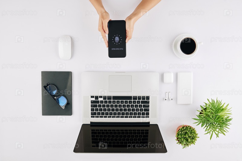 Предприниматель сканирует отпечатки пальцев