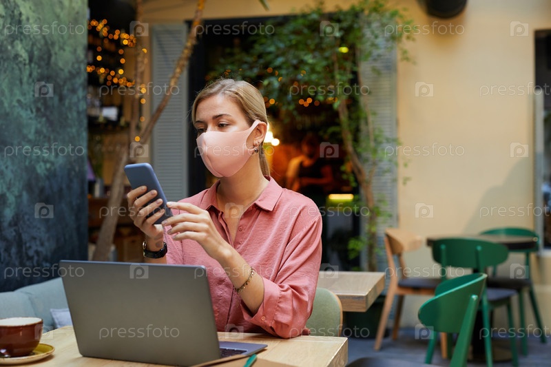 Женщина в кафе во время пандемии