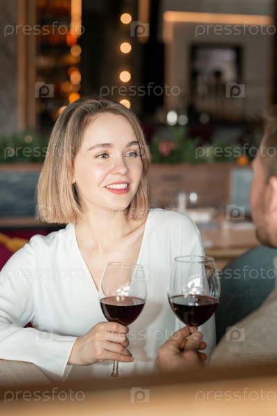 Красивая молодая женщина с зубчатой улыбкой, разговаривающая со своим парнем во время приготовления тостов