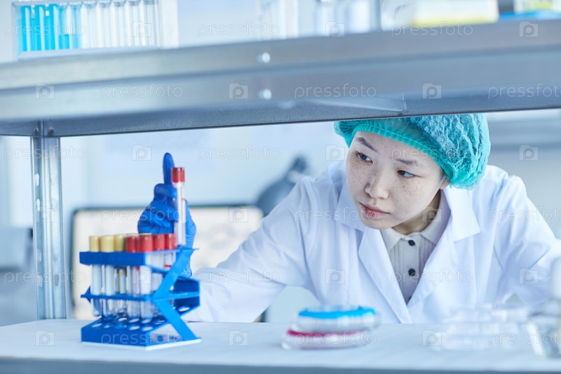Работница лаборатории вынимает тестовую трубку