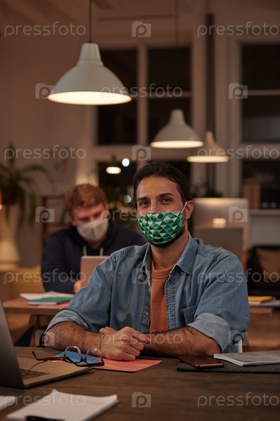 Бизнесмен в маске в офисе