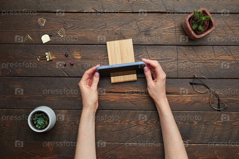 Смартфонный стенд на деревянном рабочем месте