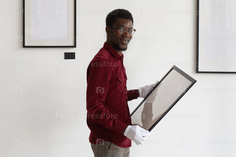 Афроамериканский мужчина планирует художественную галерею Set Up