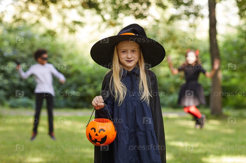 Девушка-подросток, одетая в костюм ведьмы на Хэллоуин