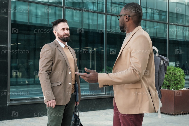 Коллеги по бизнесу разговаривают на открытом воздухе