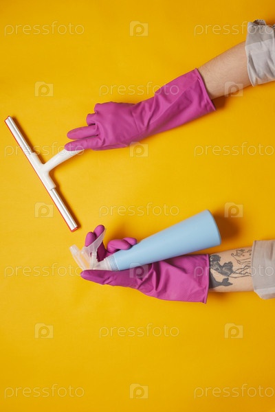 Женщина очищает поверхность