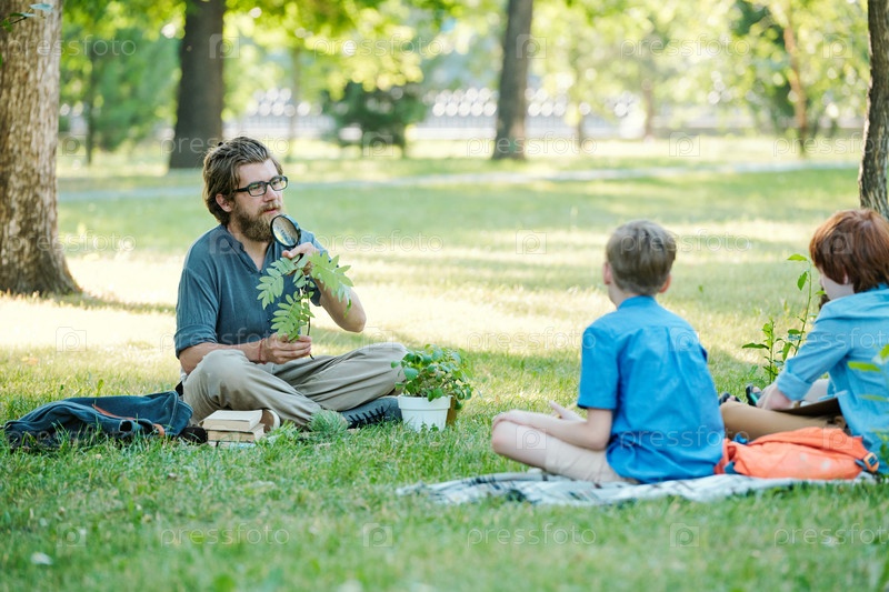 Улыбающийся учитель-мужчина на уроке открытой школы