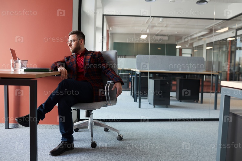 Портрет успешного бизнесмена в современном офисном интерьере