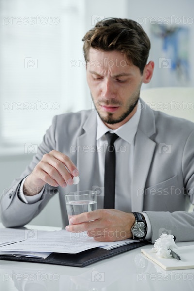 Бизнесмен растворяет таблетки в воде